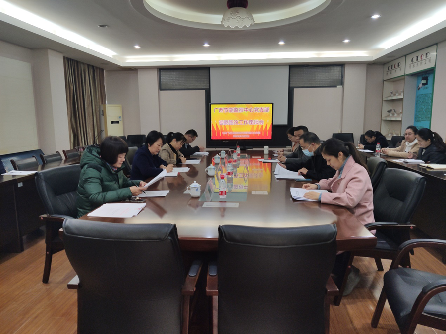 会上,自治区节能监察中心党支部书记龙晗就中心支部的整改情况结合业务工作进行了汇报,人事处、能源与综合利用处的领导同志就中心的整改情况以及措施提出了建议和意见,陆爱平进行总结发言。