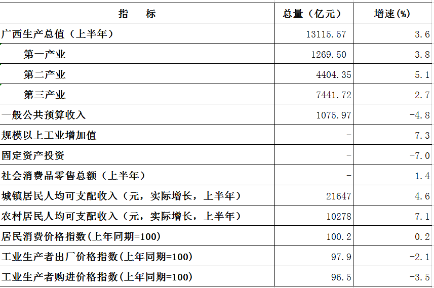 2024年1-7月广西主要经济指标数据表