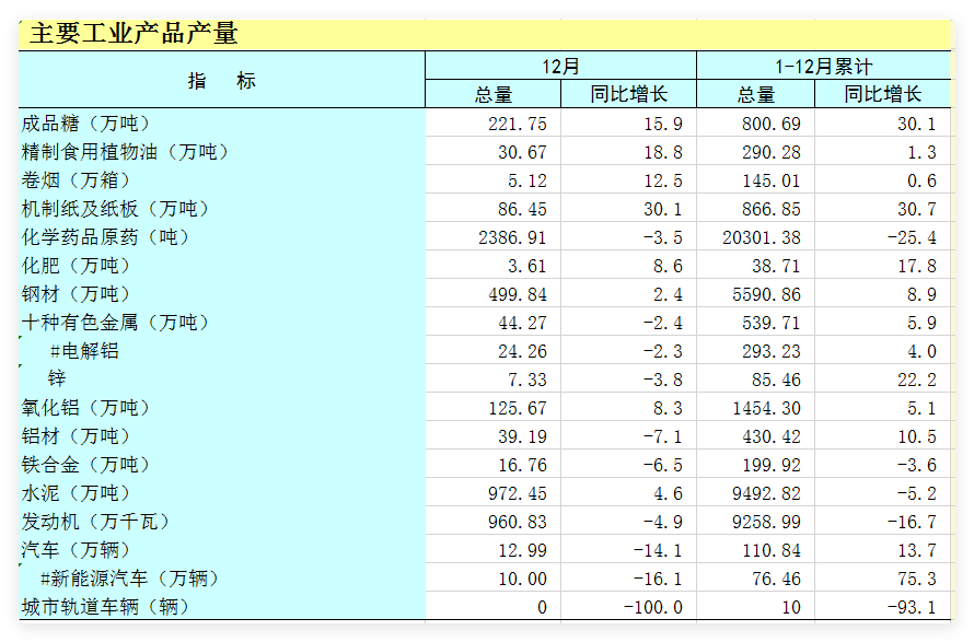 全区工业生产数据