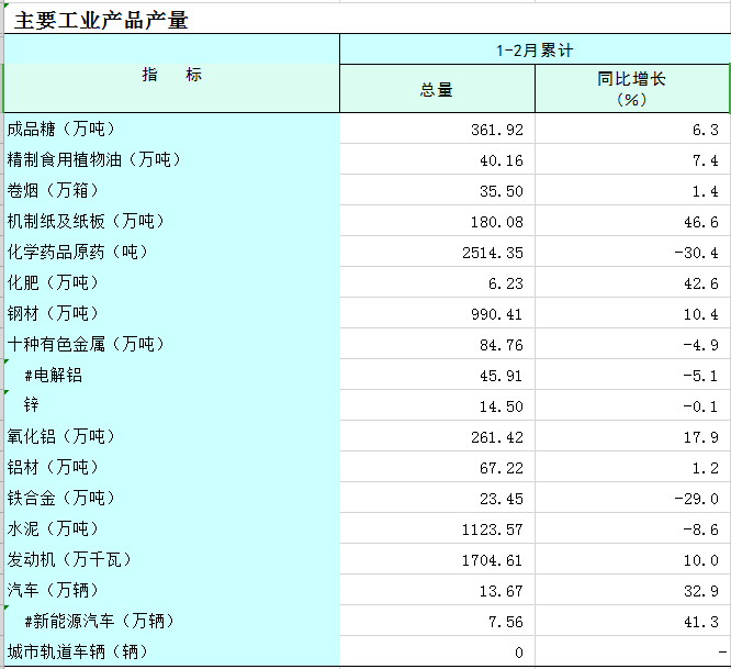 全区工业生产数据