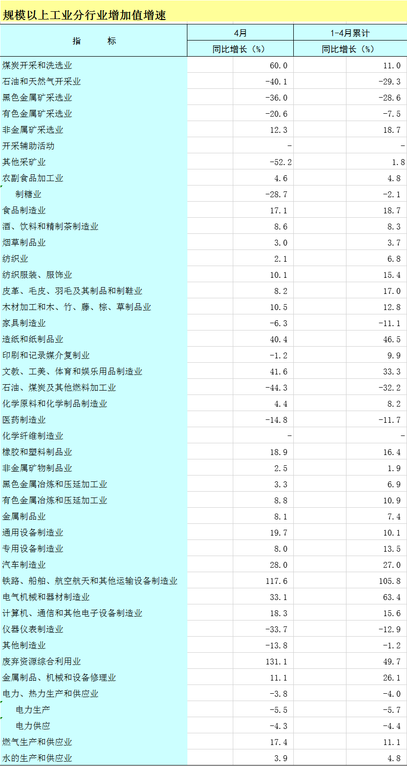 2025-05-30 09:26 来源:2025年1-4月广西规模以上工业分行业增加值增速