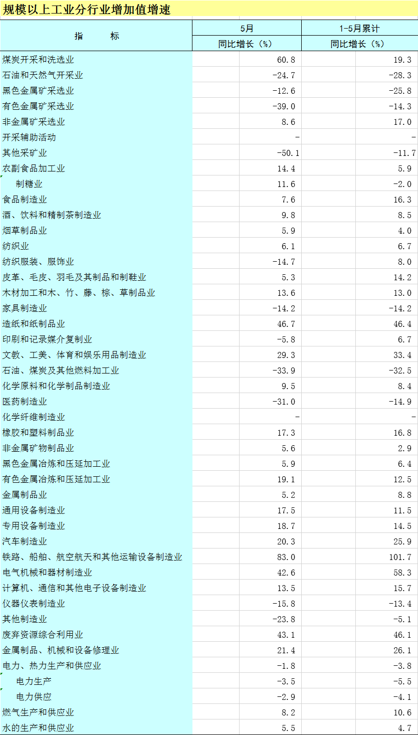 2025年1-5月广西规模以上工业分行业增加值增速