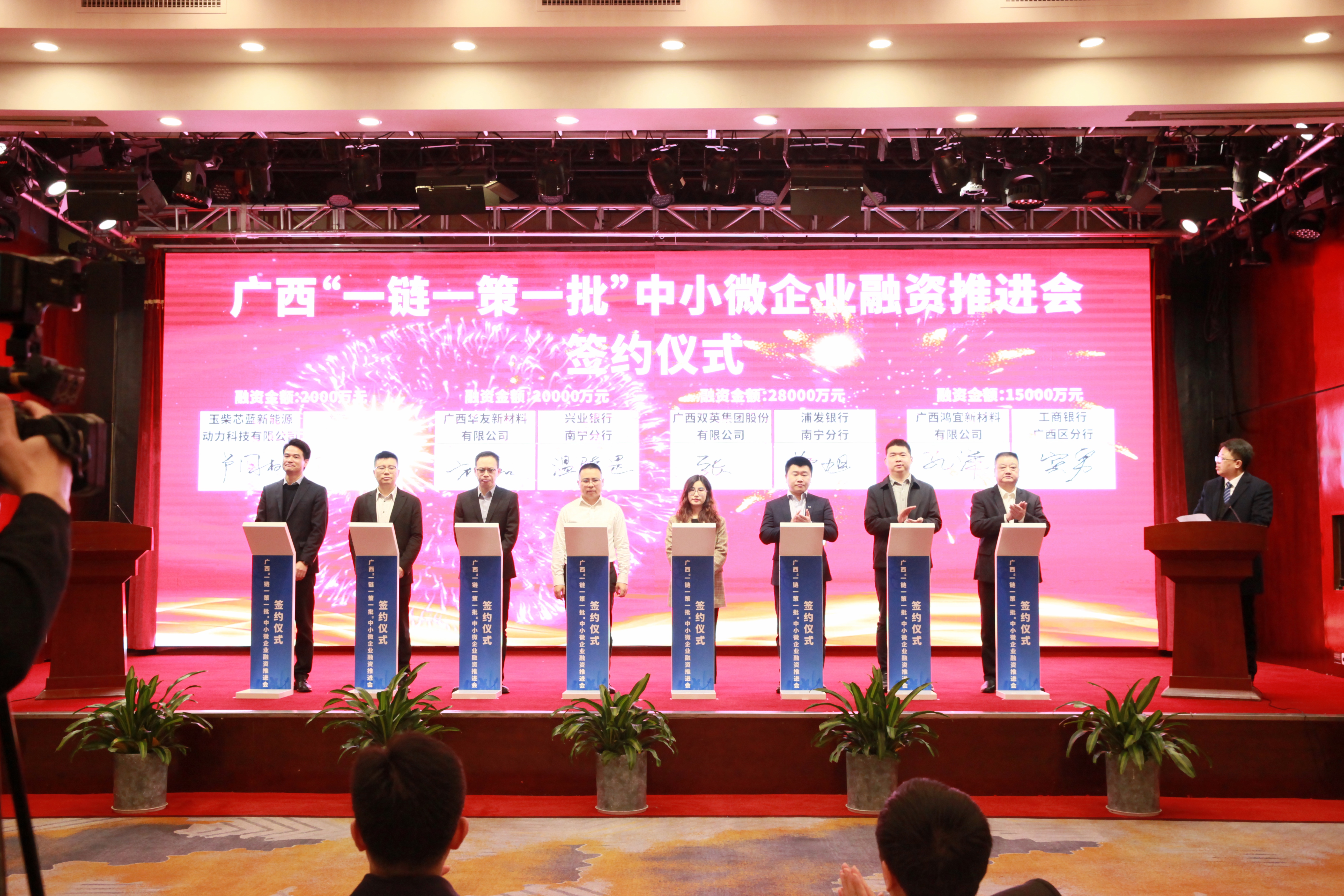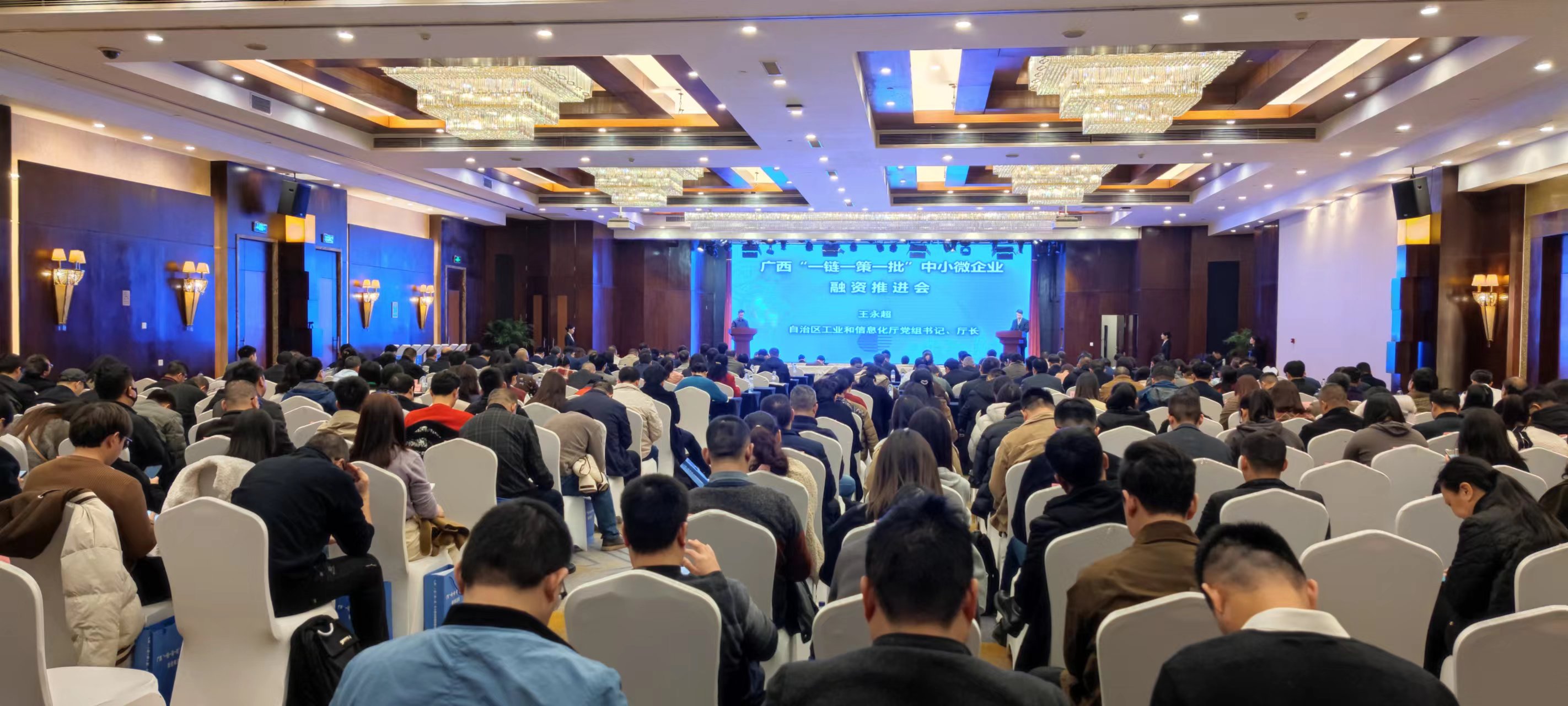 自治区涩涩视频 党组书记、厅长王永超出席会议并讲话,自治区党委金融委员会办公室、中国人民银行涩涩视频分行、国家金融监督管理总局广西监管局、广西证监局、自治区财政厅等五部门分管领导出席会议,各市工业和信息化局主要领导,全区26个重点园区分管领导,36家金融机构,中小企业服务相关机构以及全区相关行业企业等代表共300多人参会。会议现场举行了签约仪式,12家企业与金融机构签订融资协议,融资金额达42.2亿元。