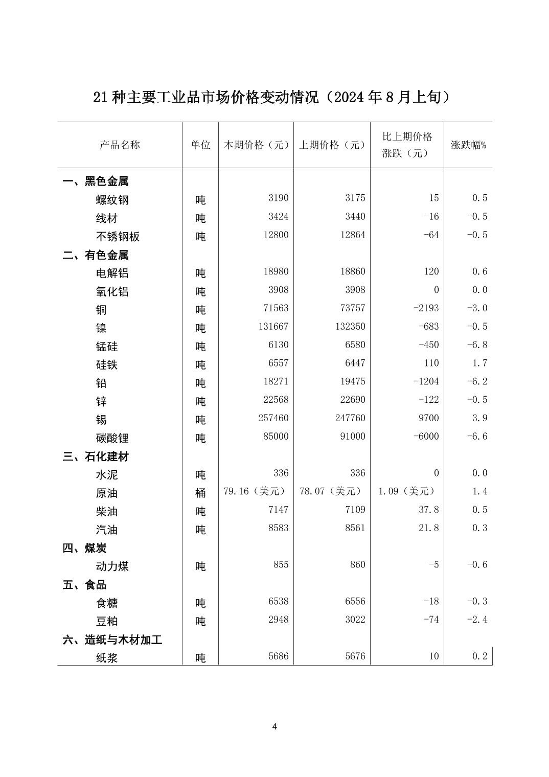 2024年8月上旬21种主要工业品市场现货价格变动情况 - 工业产品价格行情 - 涩涩视频-涩涩视频网站入口 网站