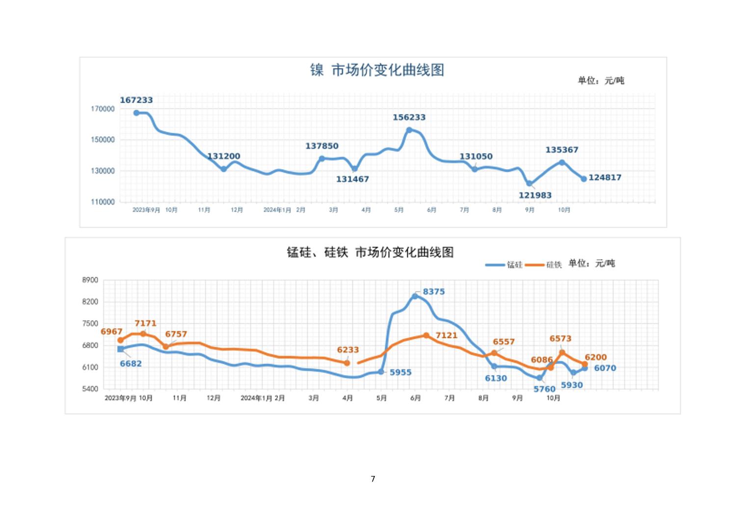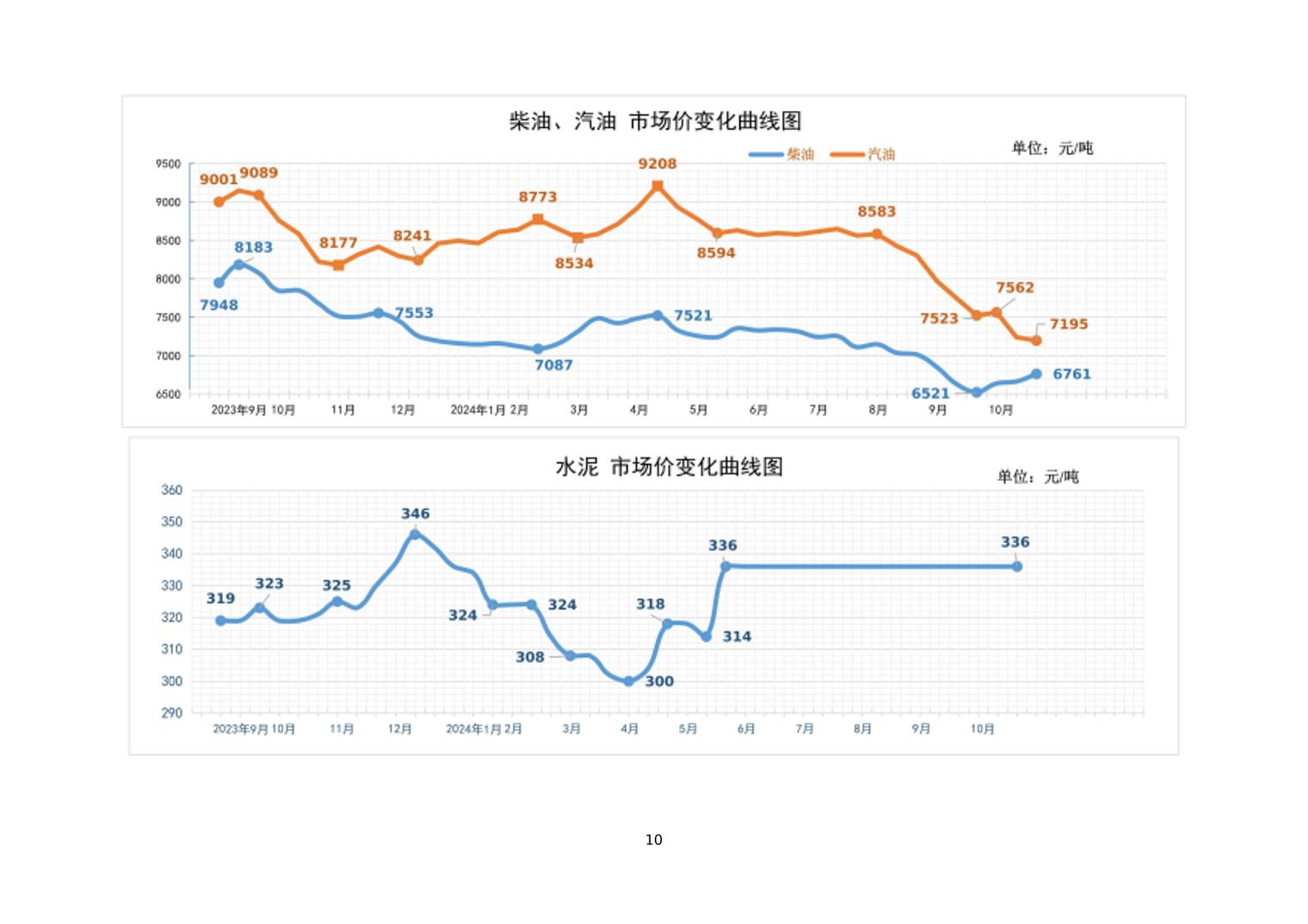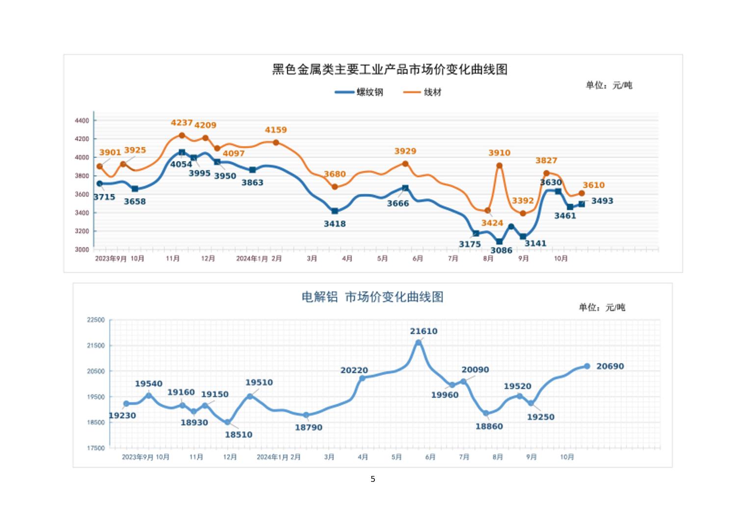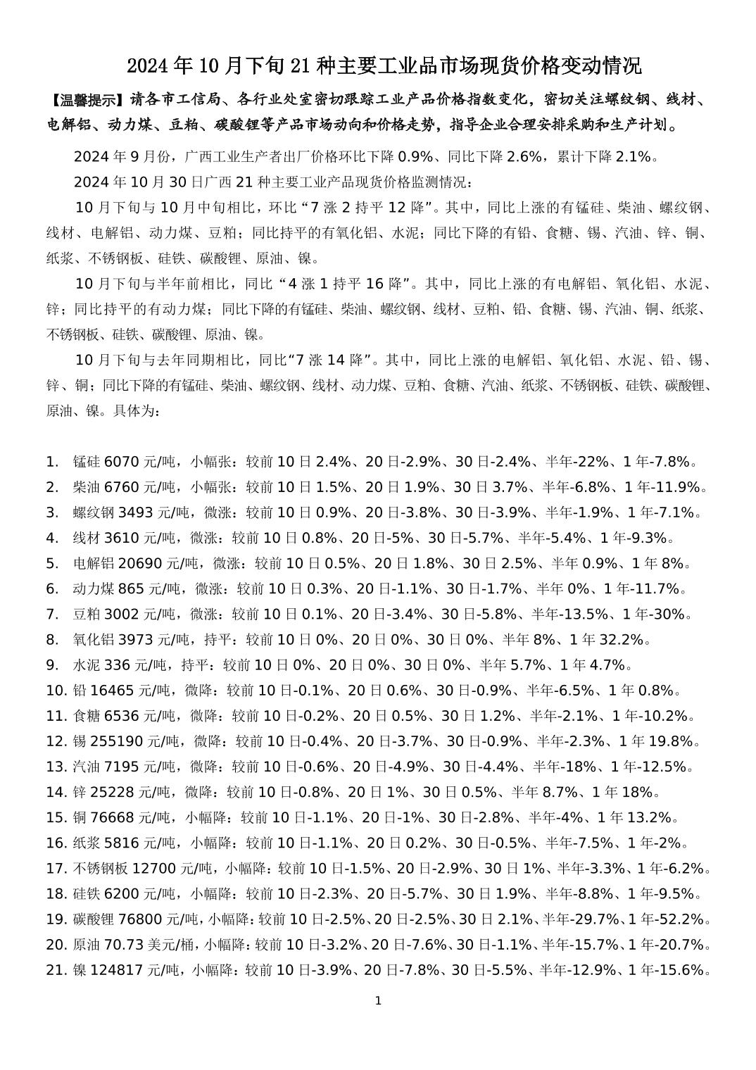 2024年10月下旬21种主要工业品市场现货价格变动情况