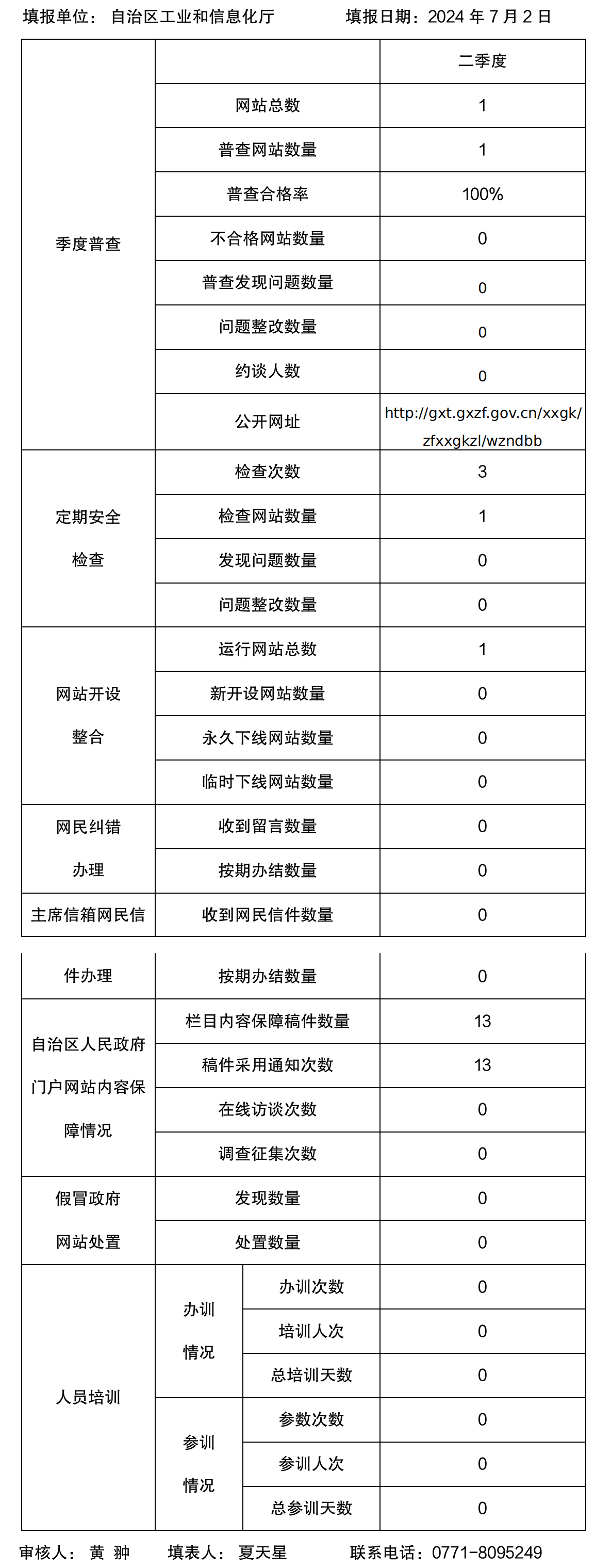 【季度普查】自治区涩涩视频 网站监管2024年第二季度普查报表