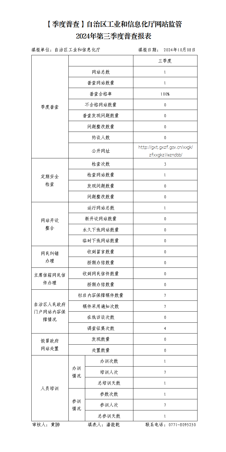 【季度普查】自治区涩涩视频 网站监管2024年第三季度普查报表