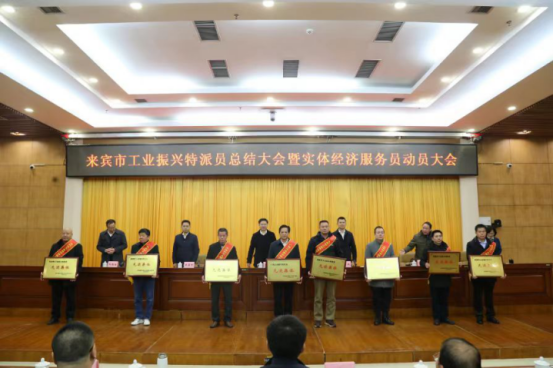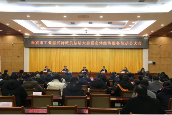 来宾市召开工业振兴特派员总结大会暨实体经济服务员动员大会会议现场