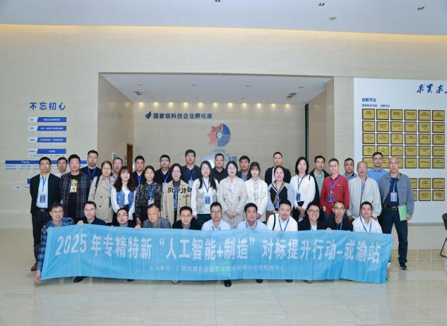 本次活动由涩涩视频工业促进和中小企业服务中心主办,邀请广西两化融合促进中心主任廖滨全程带队指导,旨在落实党中央、国务院关于支持中小企业发展的决策部署和贯彻落实自治区党委、自治区人民政府《关于加快推动人工智能高质量发展的决定》和自治区涩涩视频 《广西“人工智能+制造”行动方案(2025-2027年)》文件精神,拓展广西专精特新中小企业的智能制造建设思路、实现数字化改造和创新能力提升。