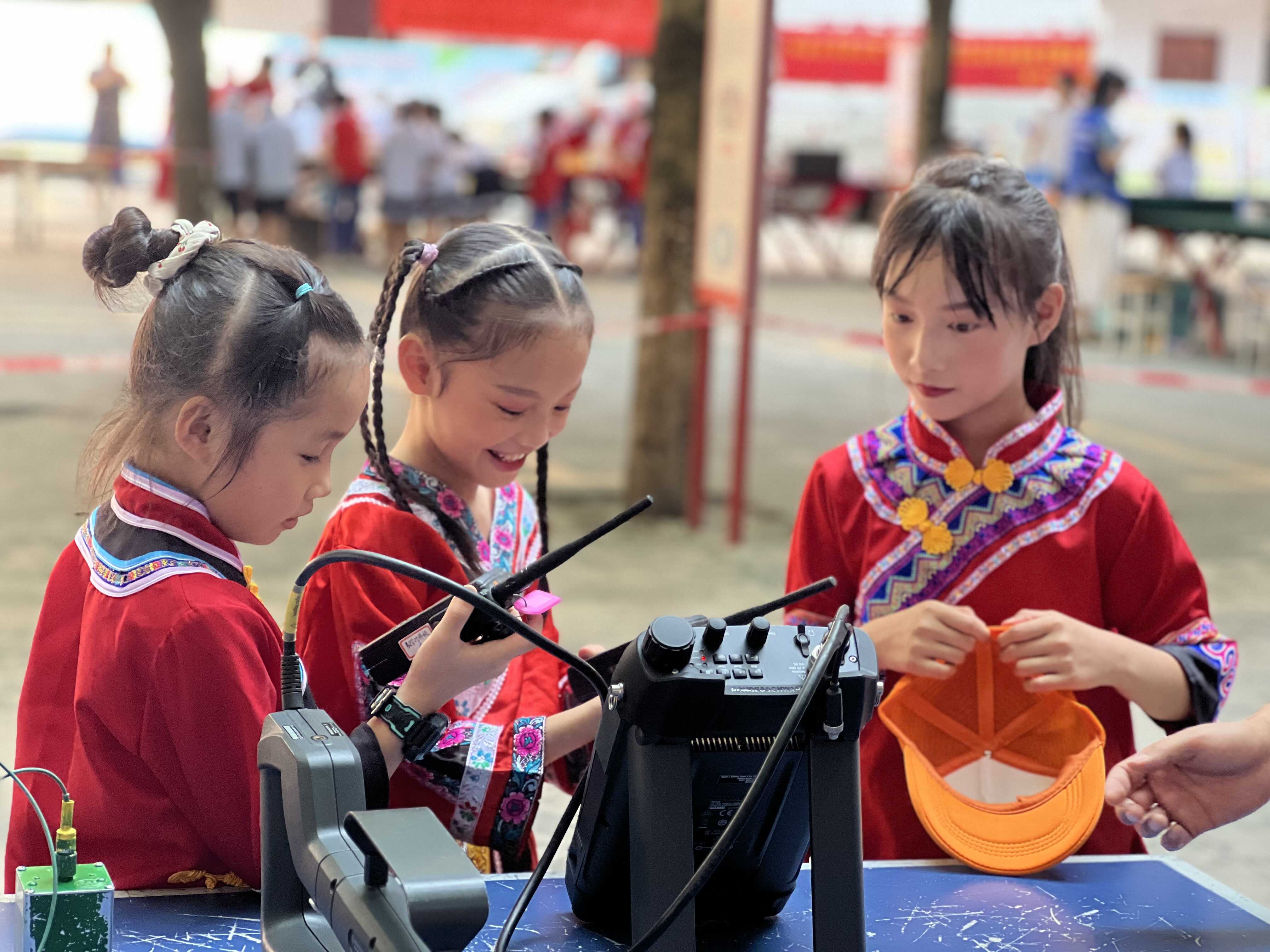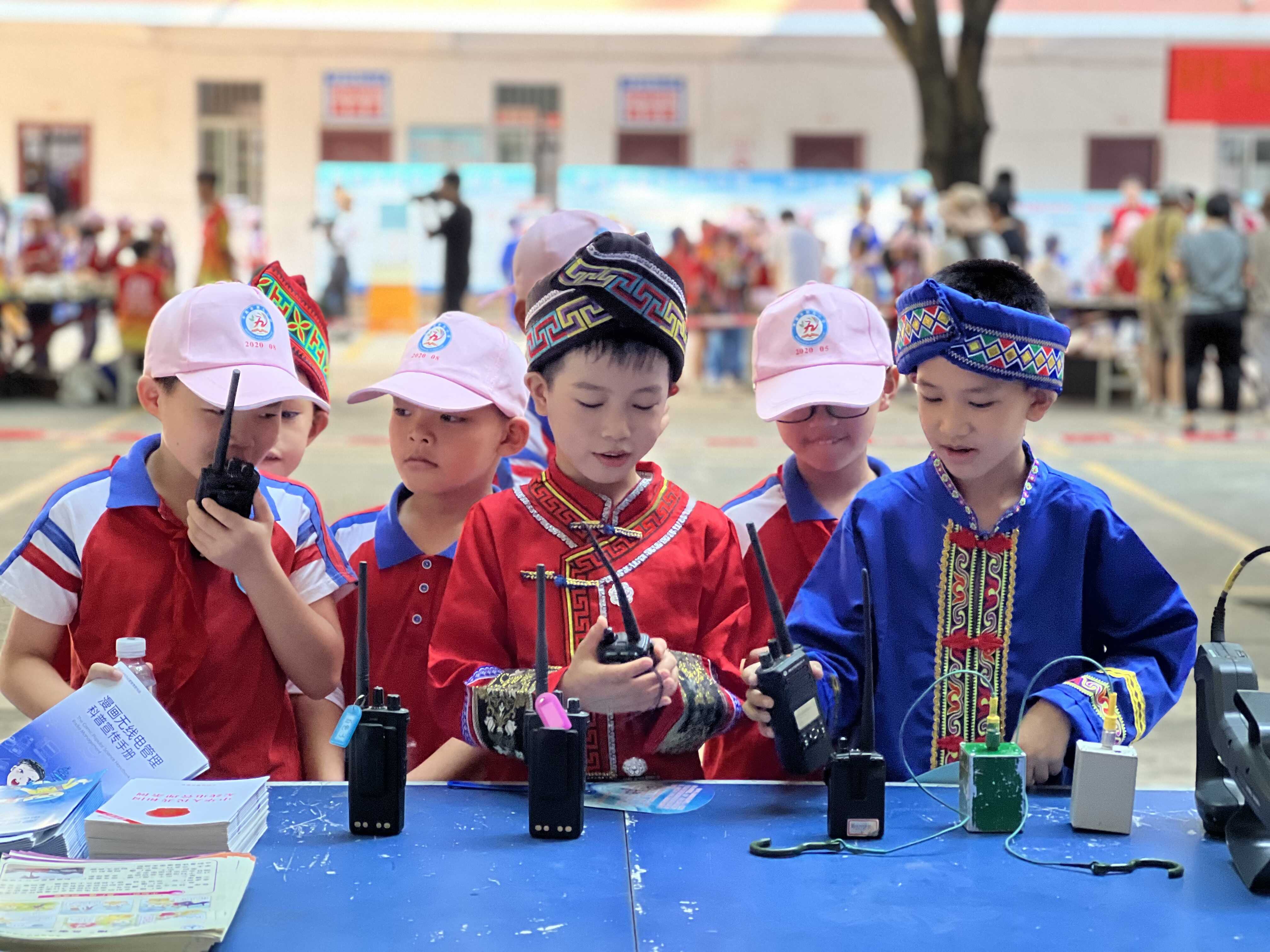 少数民族学生在学习使用对讲机
