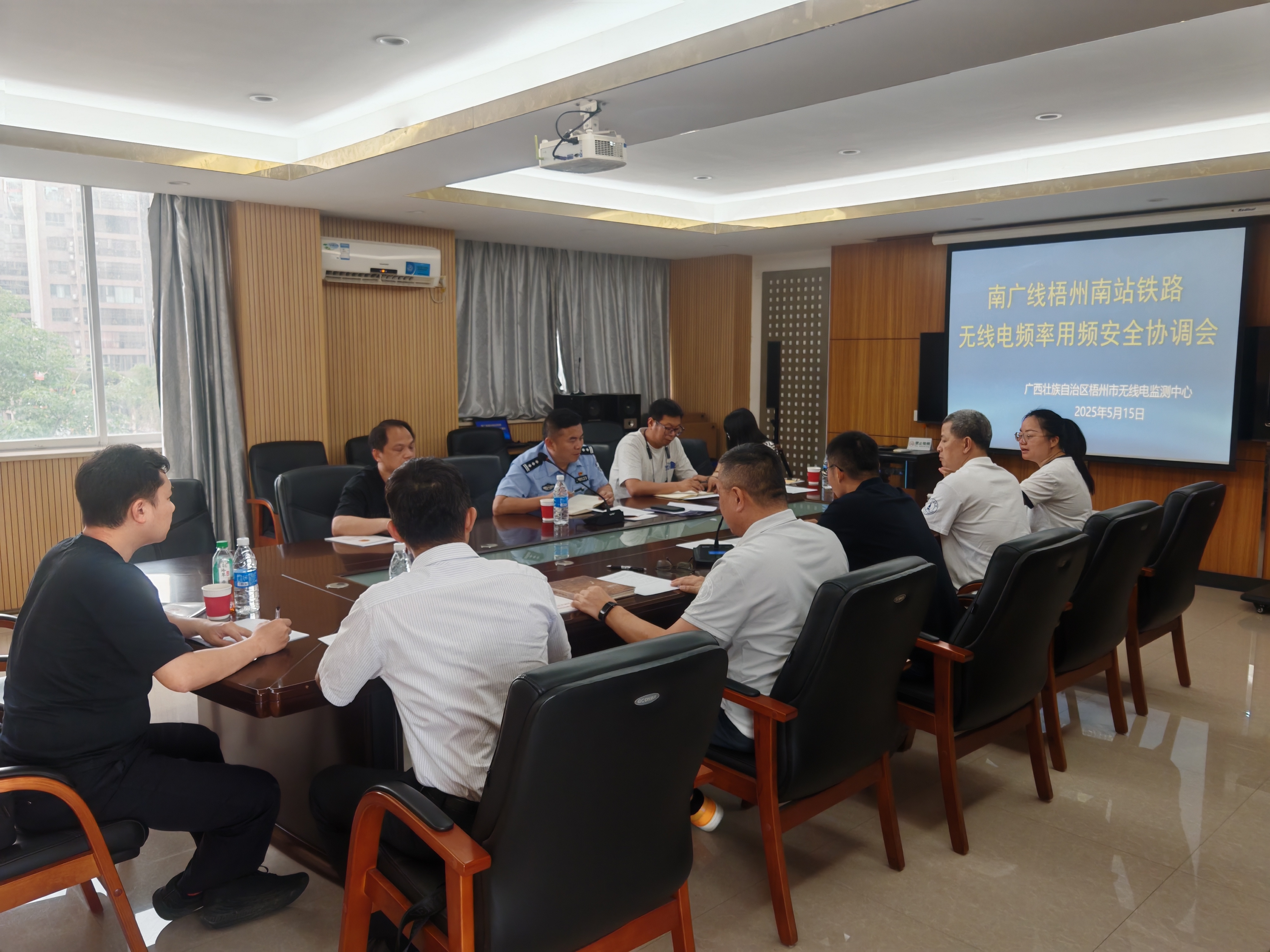 5月15日下午,南广线梧州南站铁路无线电频率用频安全协调会在涩涩视频梧州市无线电监测中心(以下简称梧州监测中心)四楼会议室顺利召开。此次会议旨在加强南广线梧州南站铁路无线电频率使用安全,消除风险隐患,确保铁路通信及相关业务的正常运行,为旅客出行安全提供有力保障。梧州市公安局交通警察支队、梧州南站派出所、贵港高铁通信车间、梧州市锦盛机动车驾驶员服务有限公司、梧州监测中心相关负责人代表参加会议。